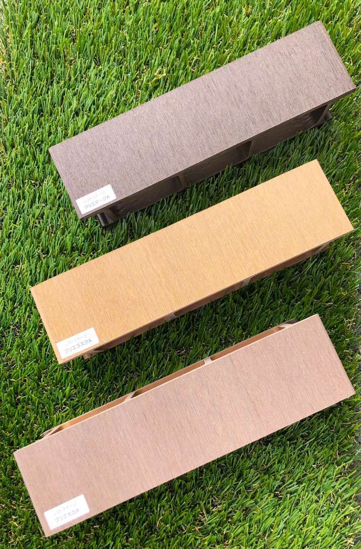 芯材部は木粉、樹脂ともに100%リサイクル素材が使用され、シックハウス症候群の原因となるトルエン・キシレンなどの有機溶剤や、ホルムアルデヒドを含む素材は使用されていないとのことです。