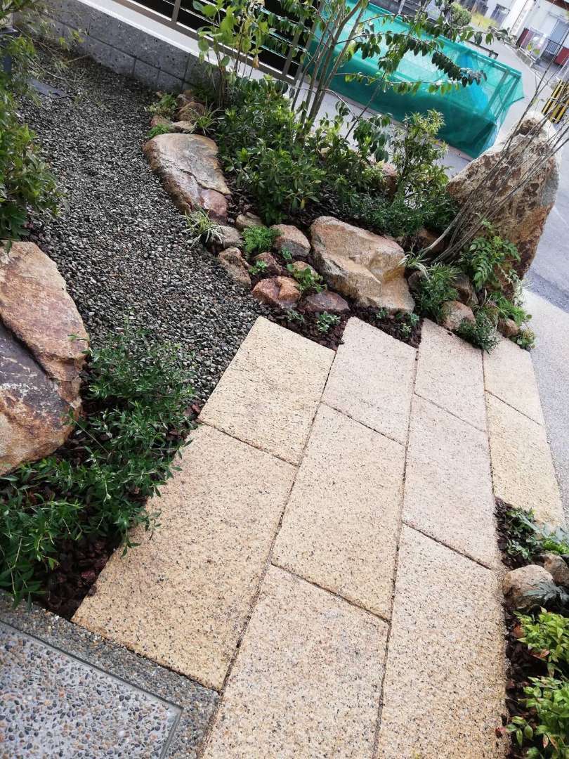 戸建て 施工事例 外構工事 外構工事をさせていただきました。岩と緑をふんだんに使い、和風モダンな外構に仕上がりました。アプローチは軒を出して屋根を作り、雨に濡れることなく玄関にアクセスできます。完全な和ではなく、和の雰囲気もありつつ洋の要素も取り入れた外構となっております。 前の施工事例 その他 版築壁 次の施工事例 戸建て 中庭外構工事